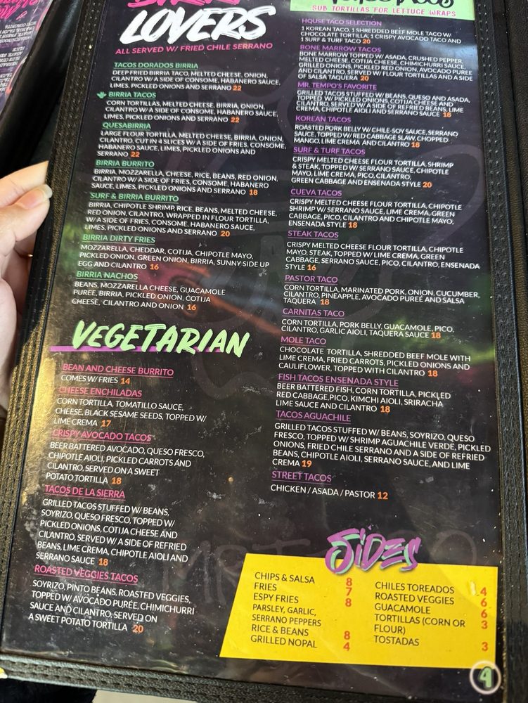 Corn Tortillas, Melted Cheese, Guajillo-Braised Short Rib, Onion, Cilantro, w/ a Side of Habanero Sauce and Consome