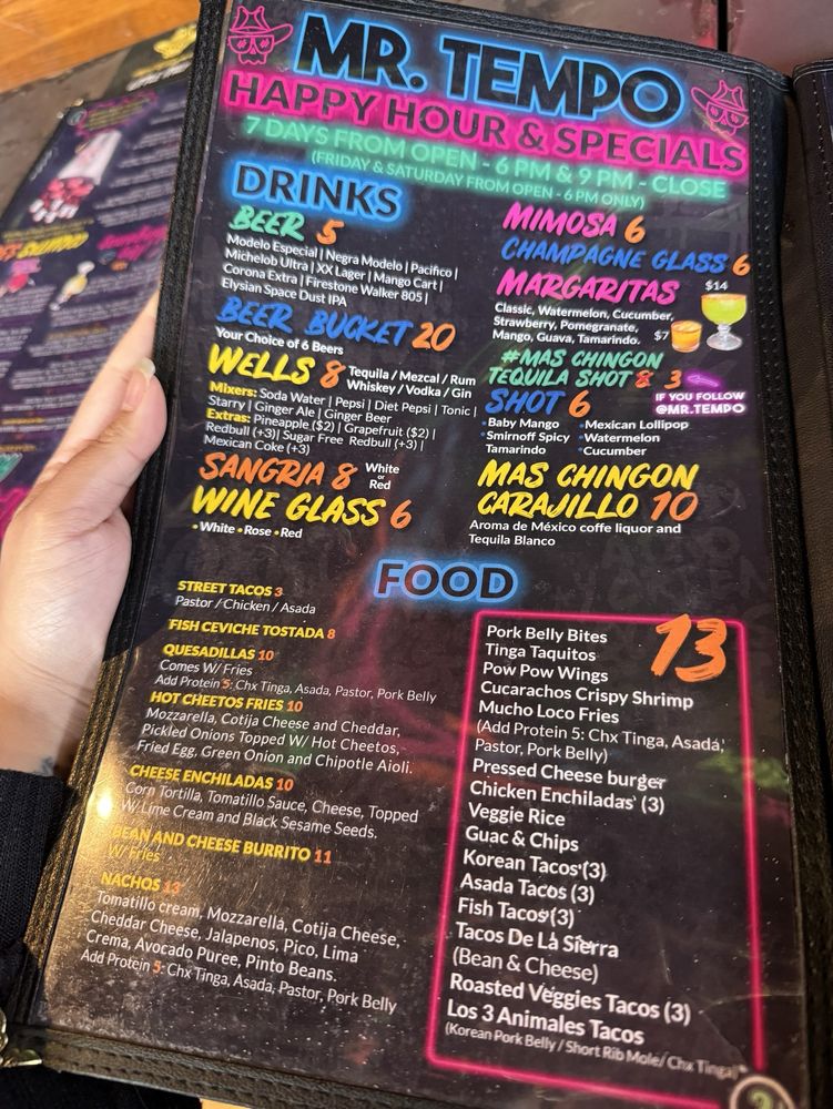 Clamato, secret sauce, mexican candy stick & your choice of Mr. Tempo Lager or Mr.Tempo Clara Beer